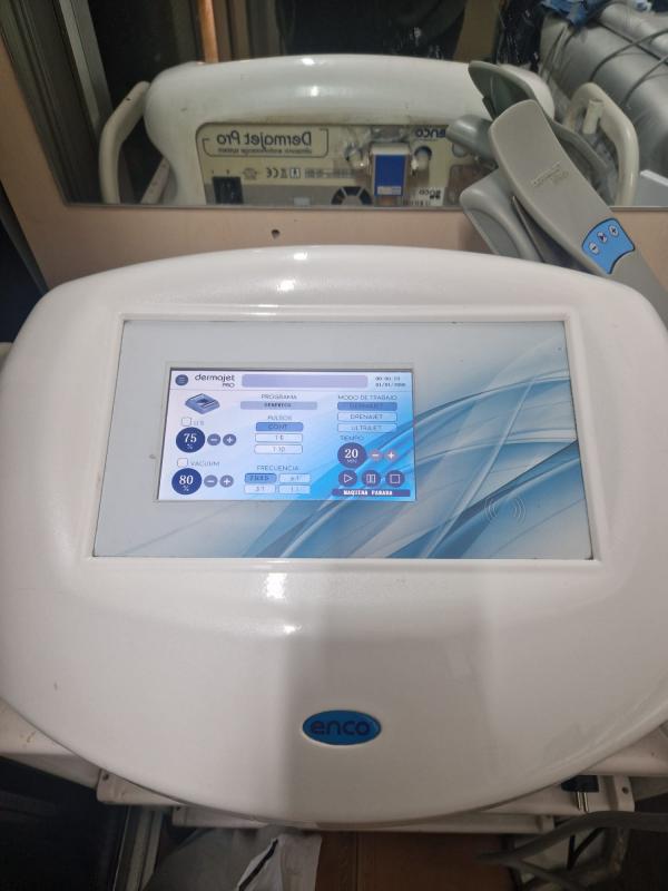 Equipo Dermajet de ultrasonidos con cavitación, ideal para reducir celulitis y reafirmar. Incluye manual, roll-up y spray Firming nuevo. Regalo: sprays a medio uso y placas térmicas de diagnóstico. Perfecto estética.